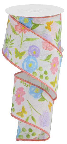 Add a touch of style and nature to your next display when you decorate with this wildflowers on royal burlap ribbon! This ribbon has a wired edge, and features a number of watercolor wildflowers on a white base, making it an ideal addition to any Spring-themed display! Use this ribbon in a wreath, paired with sprays and picks, or even a decorative sign!
