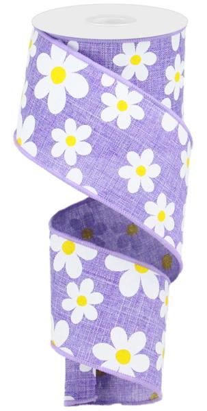 Celebrate the season in bloom by decorating with this lovely flower daisy print on royal burlap ribbon! This ribbon includes a wired edge, along with a collection of white daisies against a lavender base! Use this ribbon in a wreath finished with floral sprays and picks to complement this ribbon!