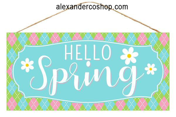 12.5"L x 6"H Hello Spring W/Flower Sign