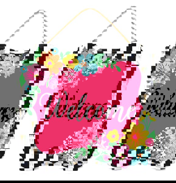 10.5"Lx9"H Floral Welcome Checker Border