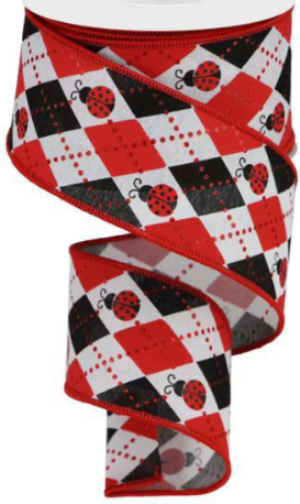 2.5" X 10 yd Argyle Ladybugs Wired Ribbon