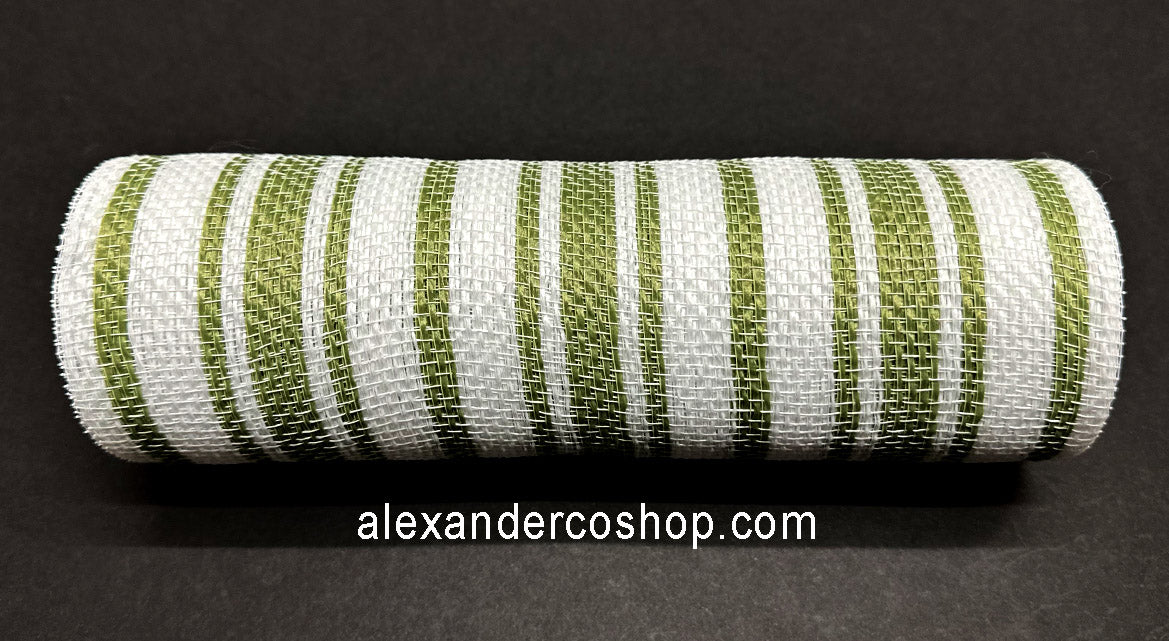 10" x 10yd White/Moss Ticking Fabric Stripe Mesh