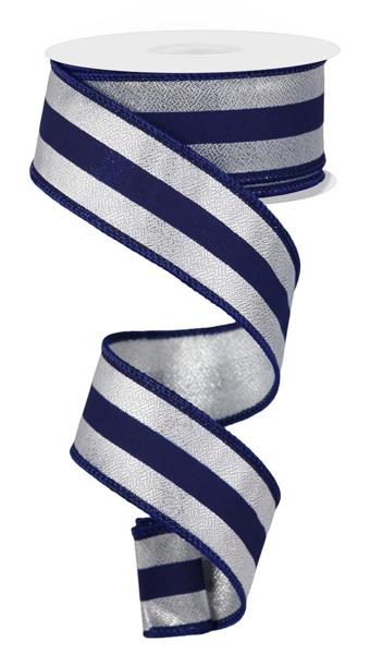 1.5" x 10 yds Navy Silver Cross Diagonal Stripe Metallic Edge