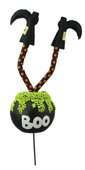 27" Upside Down Legs Boo Cauldron Pick