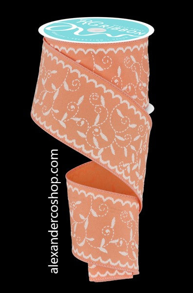 2.5" by 10yds Tan/White Cabana Stripe/Peach Peonies