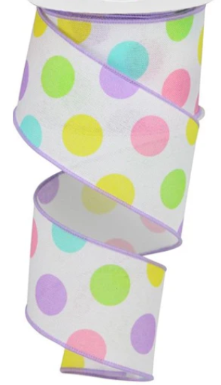 2.5" X 10 yd Multi Polka Dots/Royal White/Lavender/Pink/Yellow/Green Wired Ribbon