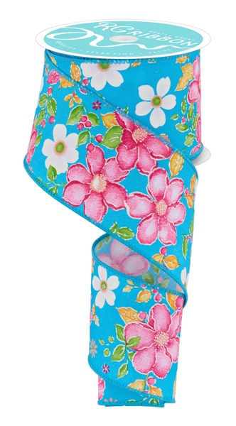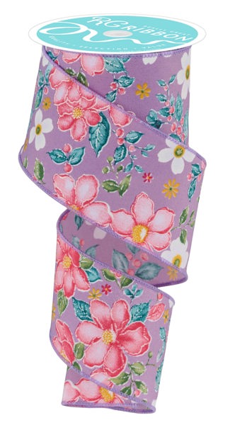 2.5" x 10yd Soft Florals On Diagonal Weave