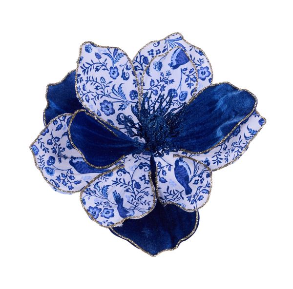 7"Dia x 4.5"H Glitter/Velvet Magnolia