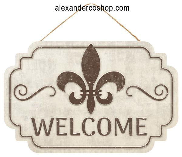 12.5"L x 8"H Welcome/Fleur De Lis Sign