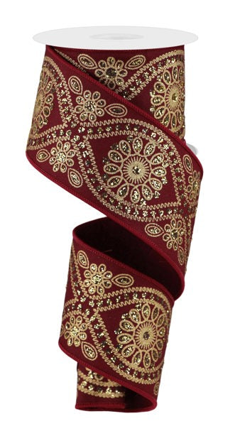 2.5" x 10yd Deluxe Wavy Floral Red/Gold