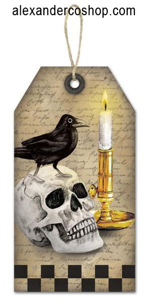12"H x 6.5"L Skull/Crow/Candlestick Tag