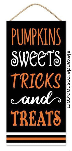 12.5"H MDF PUMPKINS TRICKS TREATS SIGNS ORANGE/BLACK/WHITE