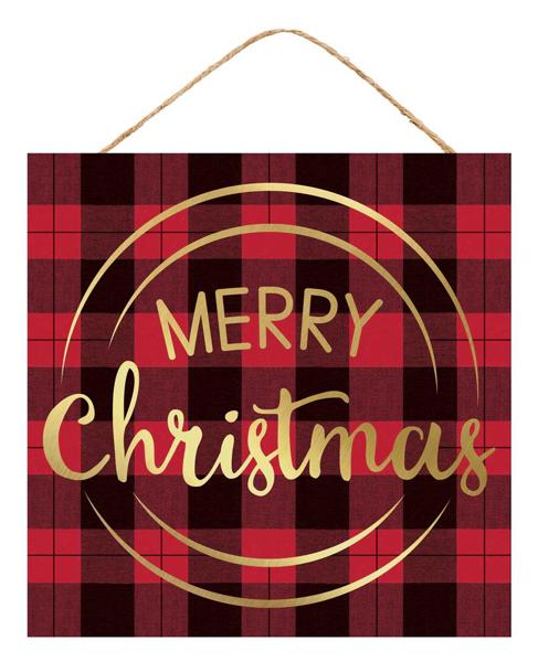10"Sq Merry Christmas Check Sign