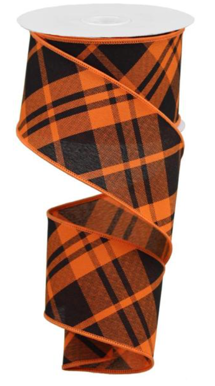 2.5" x 10yd Orange & Black Diagonal Plaid