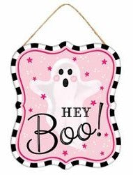 7"Lx6"H Tin Matte Ghost Signs - Hey Boo!