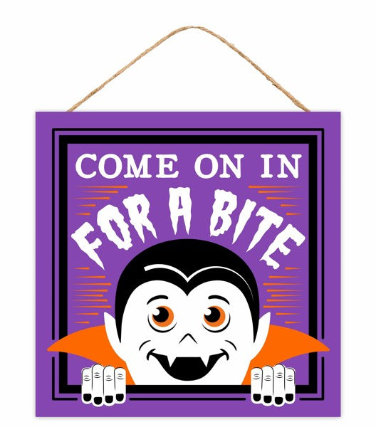 10"Sq Come On In For A Bite Vampire Sign