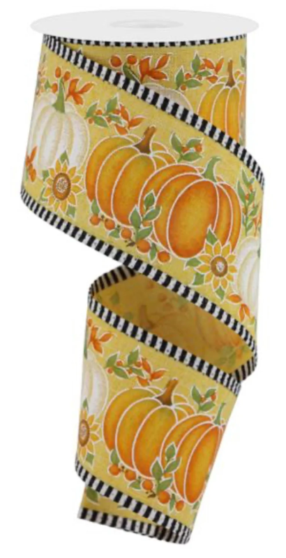 2.5" x 10yd Mustard Pumpkins with Stripe Border