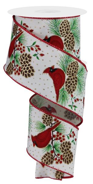 2.5" x 10yd Cardinal On Pinecone Branch