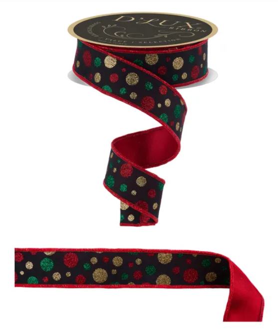 1.5" x 10yd DLUX Multi Polka Dot/Fused