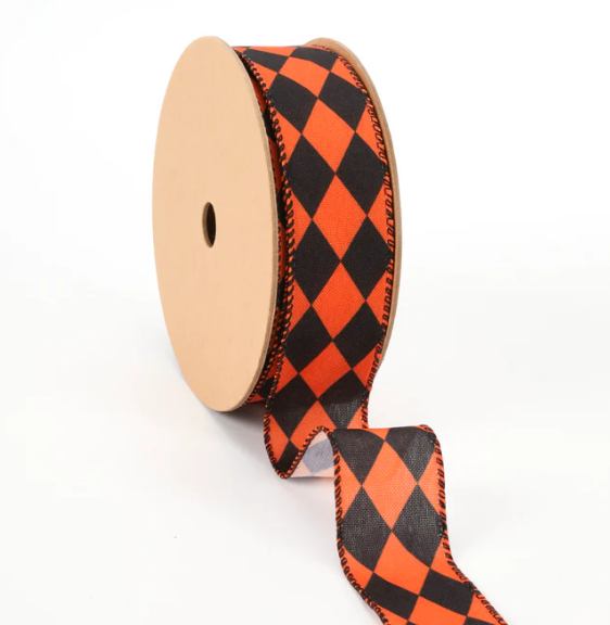 1.5" x 10yd Faux Linen Wired Ribbon | Rhombus
