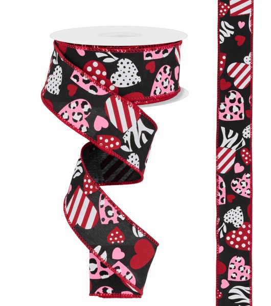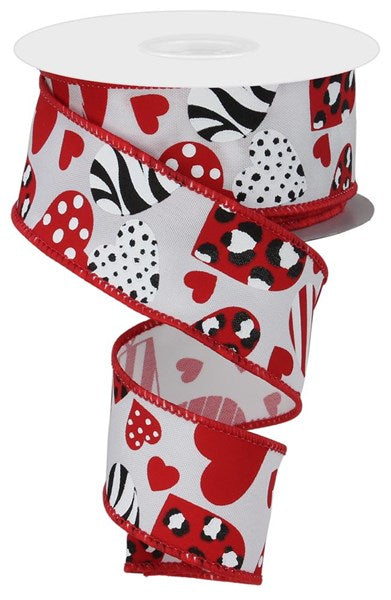 1.5" x 10yd White/Red/Pink Dot Strip Hearts