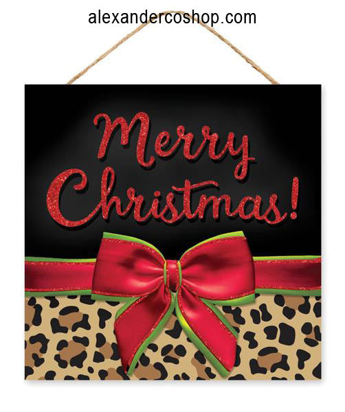 10"Sq Leopard Print Merry Christmas Sign