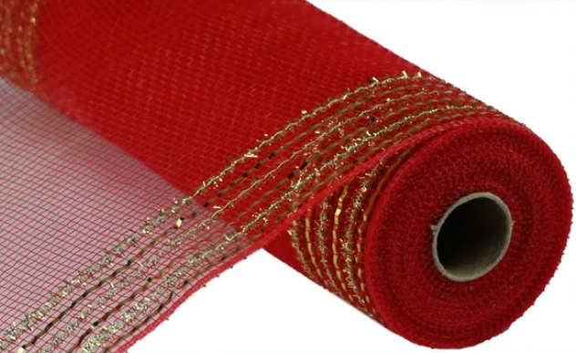 10.5" x 10yd Poly/Jute/Metallic Mesh - Red/Emerald/Natural
