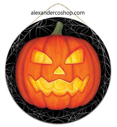 10.5"DIA SPOOKY JACK-O-LANTERN SIGN ORANGE/YELLOW/BLACK/WHITE