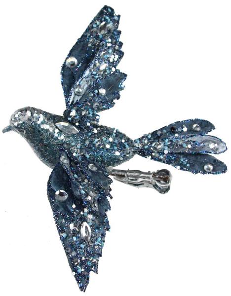 10.5"L Velvet/Bead Bird W/Clip