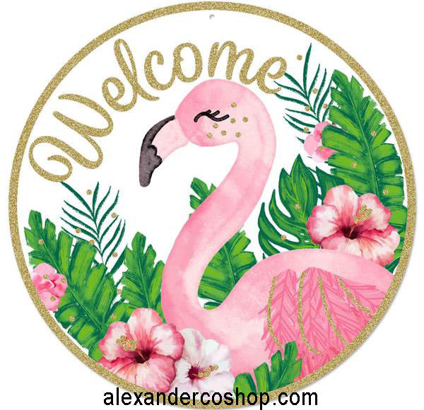 12"Dia Glitter Welcome Flamingo Sign