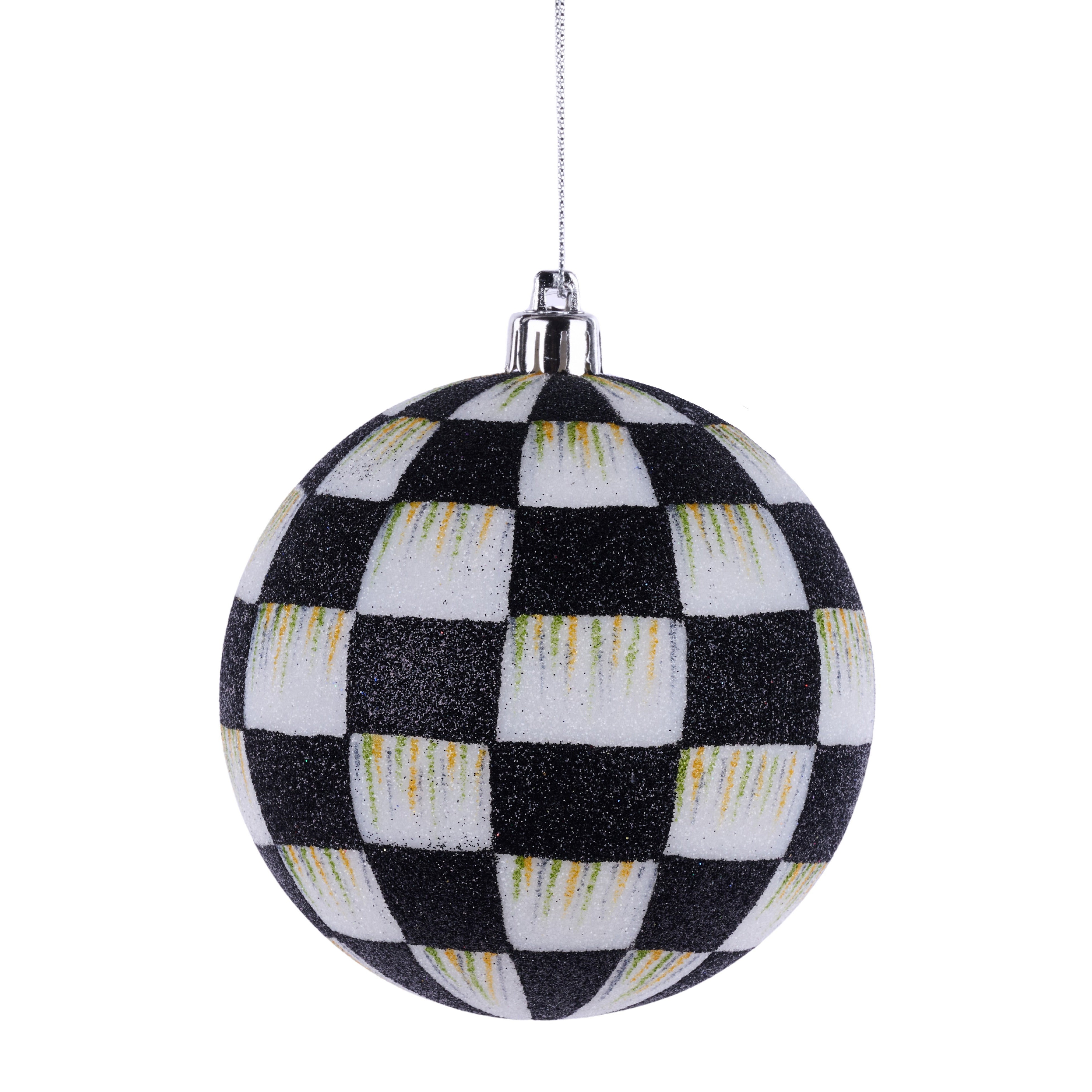 100Mm Check Glitter Ornament