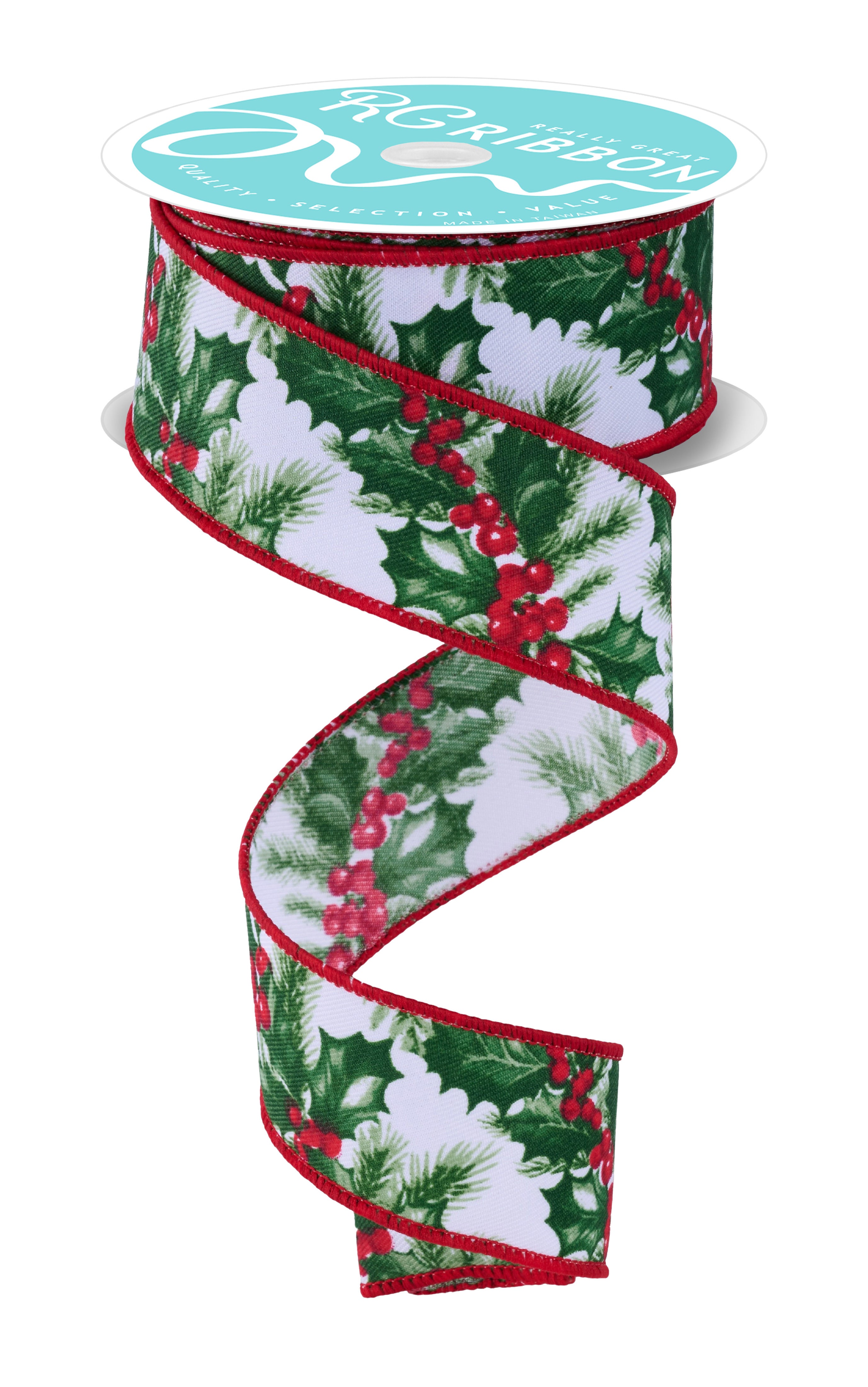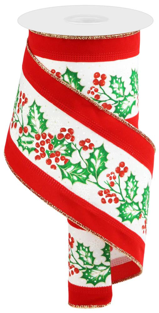 4" x 10yd 3-In-1 Holly Leaves/Berry/Velvet