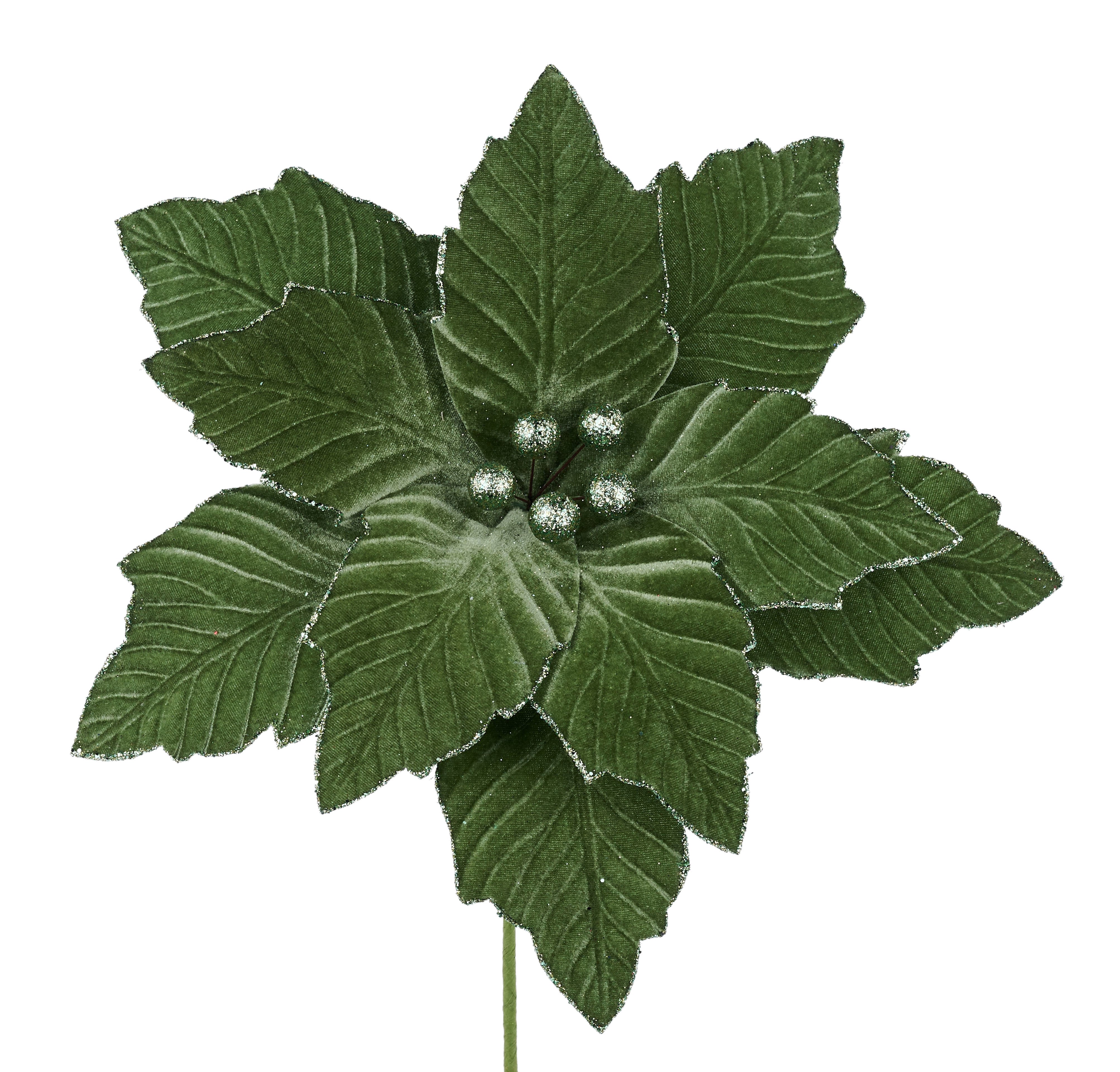 12.5"Dia Velvet Poinsettia, 10.5"L Stem