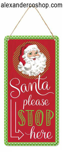 12"H Tin Santa Please Stop Here Sign