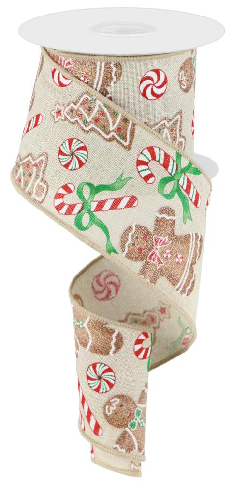 2.5" x 10yd Gingerbread W/Candy On Royal