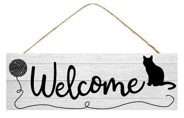 15"L x 5"H Welcome W/Cat/Yarn Sign