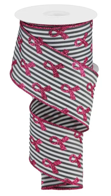 2.5" x 10yd Glitter Breast Cancer/Stripe