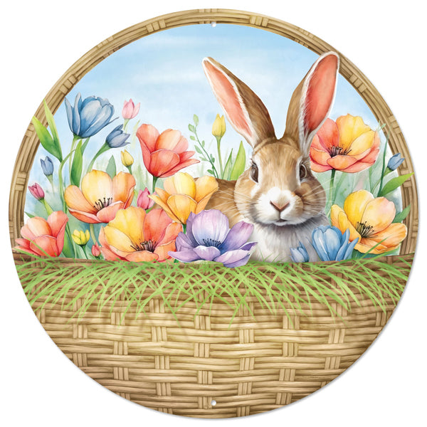 12"Dia Basket W/Bunny And Flower Sign