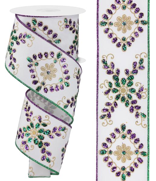 2.5" x 10yd Fleur De Lis Harlequin/Tinsel