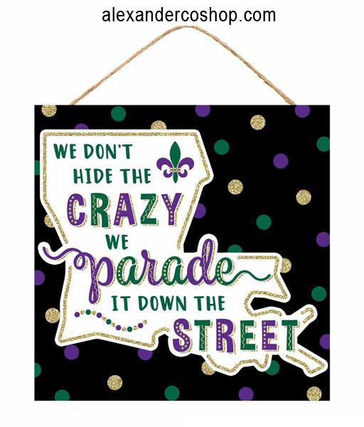 28"L Fabric/Glttr Mardi Gras Gnome Spray
