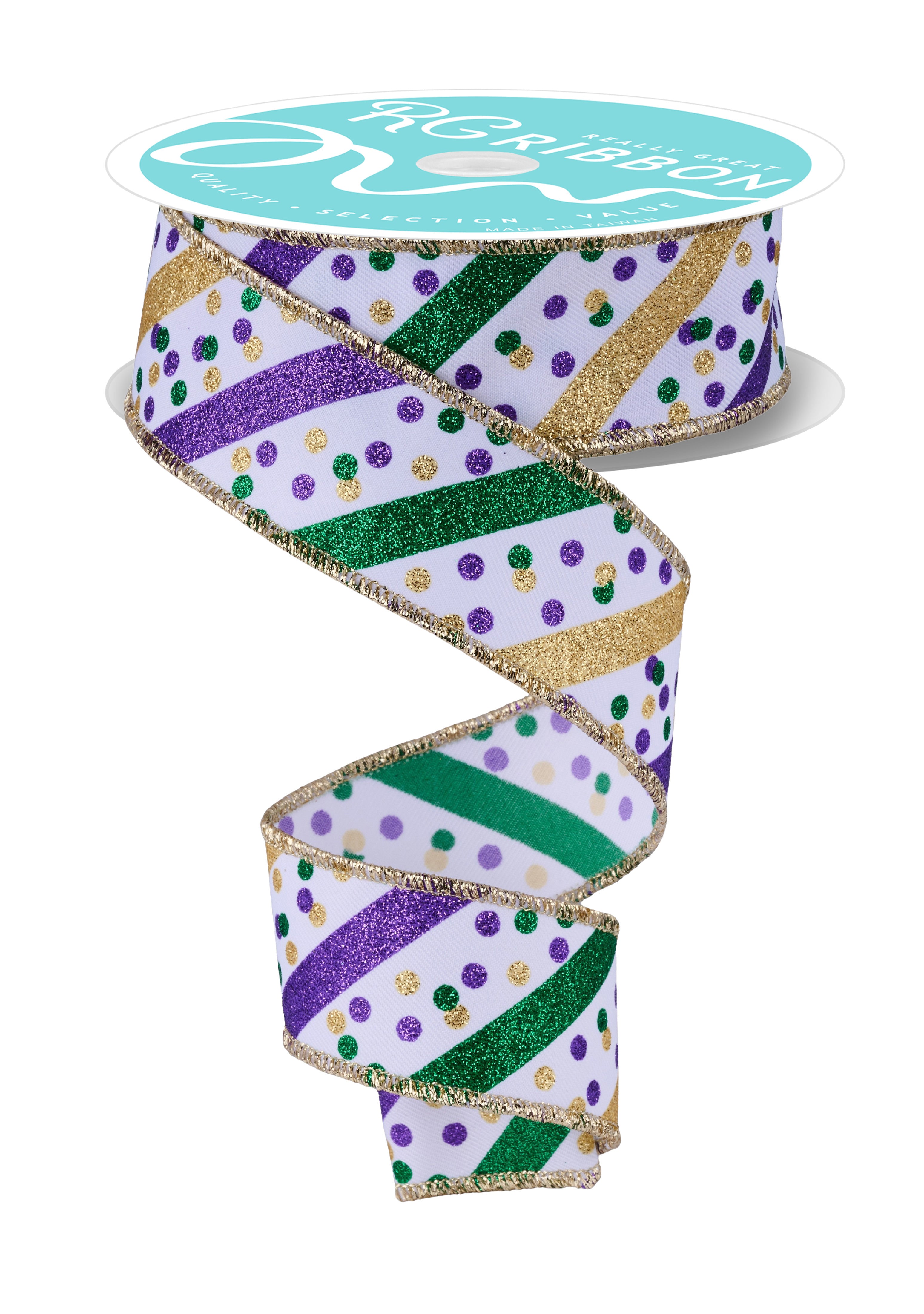 1.5" x 10yd Glitter Stripe W/Confetti Dots