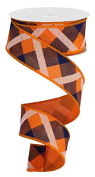 1.5" x 10yd Printed Plaid On Royal Orange Navy Blue White