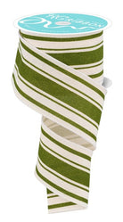 2.5" x 10yd Farmhouse Stripe On Cotton Ivory/Moss Green