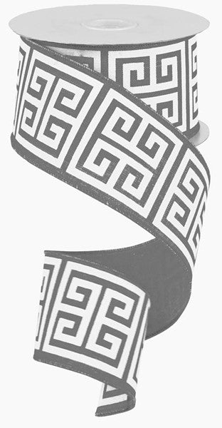 2.5" x 10yd Greek Keys/Royal Grey/White