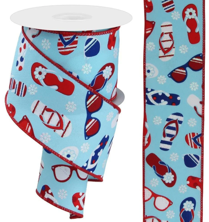 2.5" x 10yd Patriotic Flip Flops and Sunglasses