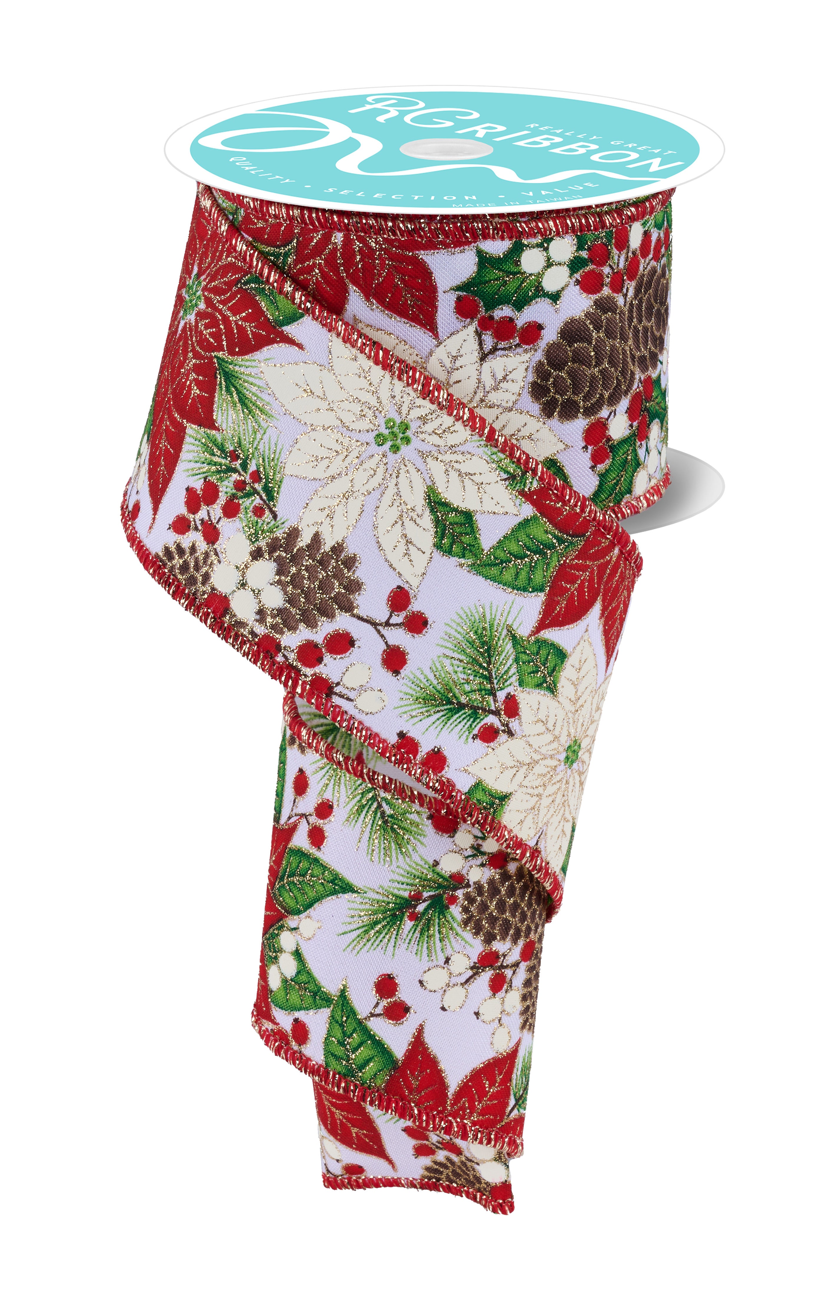 2.5" x 10yd Poinsettia Foliage/Pinecones