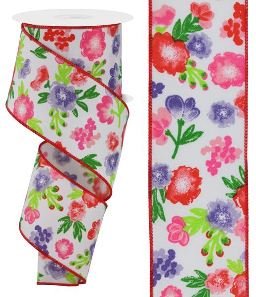 2.5" x 10yd Soft Florals On Diagonal Weave