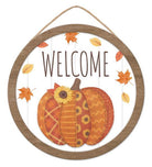 10.5"Dia Welcome/Quilted Pumpkin Sign