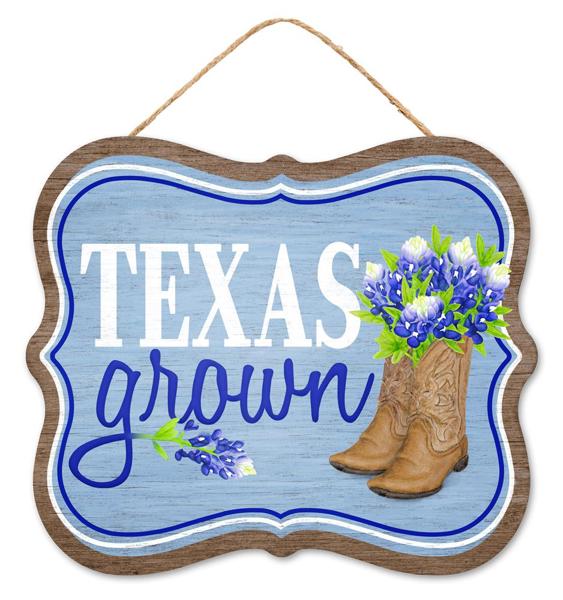 Show that your decorating skills are the pride of Texas with this phenomenal sign! Featuring a pair of cowboy boots with a bouquet of blue flowers filling them, this sign will make any Texan or gardener proud. Use this sign as the centerpiece of a wreath display, complete with themed ribbon, colorful mesh, and sprays and picks to highlight the floral element!