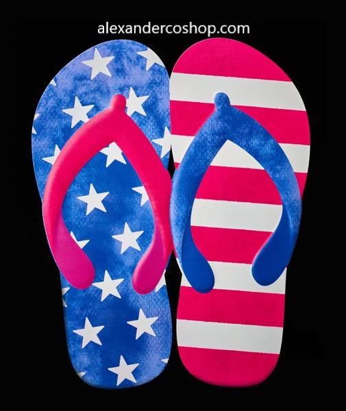Show off the star in you as you display these sensational metal flip flops! These flip flops include a mix of hot pink and white stripes, as well as white stars against a blue background, allowing these flip flops to stand out for all the right reasons. Use these flip flops as the centerpiece of a wreath display, complete with ribbon, sprays and picks, or even colorful mesh to tie it all together!